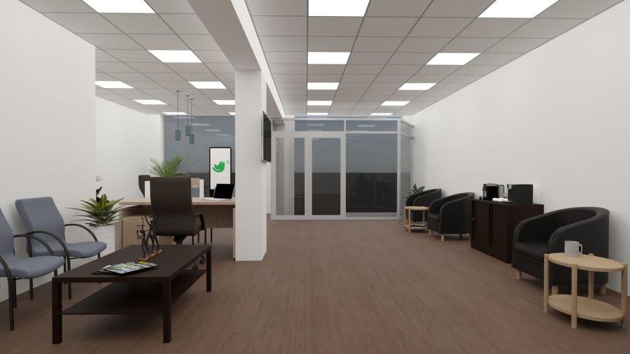 Se opta por un gran espacio principal de recepción, sala de espera y zona de trabajo, donde se atenderá al cliente. Cuenta también con una sala insonorizada especialmente para la realización de pruebas autitivas, dando así mayor comodidad que las antiguas cabinas para realizar estas pruebas.