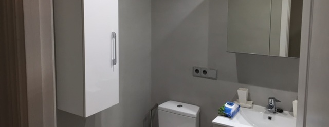 En esta ocasión, ampliamos las funciones del baño y experimentamos con el microcemento creando una superficie continua entre paramentos verticales y horizontales, dando un aspecto y uso completamente distintos.